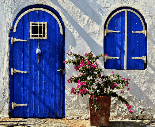 Comme vous l'avez sûrement remarqué, beaucoup de maisons méditerranéennes sont peintes de la même manière : les murs en blanc et les fenêtres et portes en bleu. C'est également le cas dans la ville de Bodrum, dans la province de Mu?la au sud-ouest de la Turquie. Cette ville fondée par les Grecs sous le nom d'Halicarnasse est aujourd'hui une escale touristique pour les Turcs comme pour les étrangers.