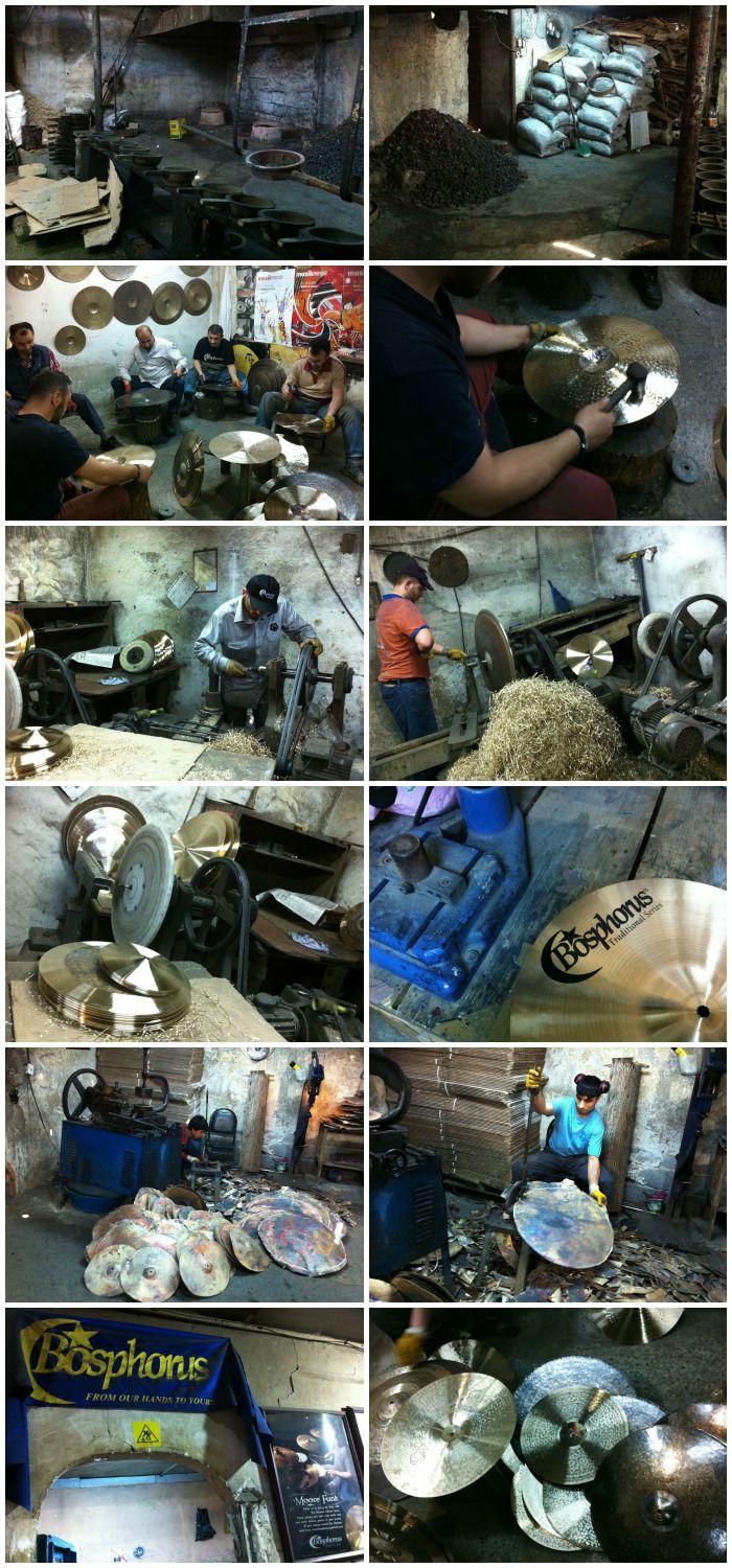 C'est donc ici, dans ce trois-pièces vétuste, poussiéreux et mal éclairé, que sont fabriquées certaines des meilleures cymbales du monde? Le verbe ?fabriquer? n'est pas tout à fait juste. Il faudrait dire coulées, roulées, pliées, pressées, martelées, tournées, bref, façonnées par les artisans. ?Nous sommes l'une des toutes dernières entreprises qui perpétue huit siècles de tradition des cymbales turques. Comme vous le voyez, chez nous, absolument tout est fait à la main. Pour le métal ? un mélange de cuivre et d'étain ? nous utilisons encore une fonderie au charbon? explique Emrah Sipahi, directeur des ventes de Bosphorus Cymbals.