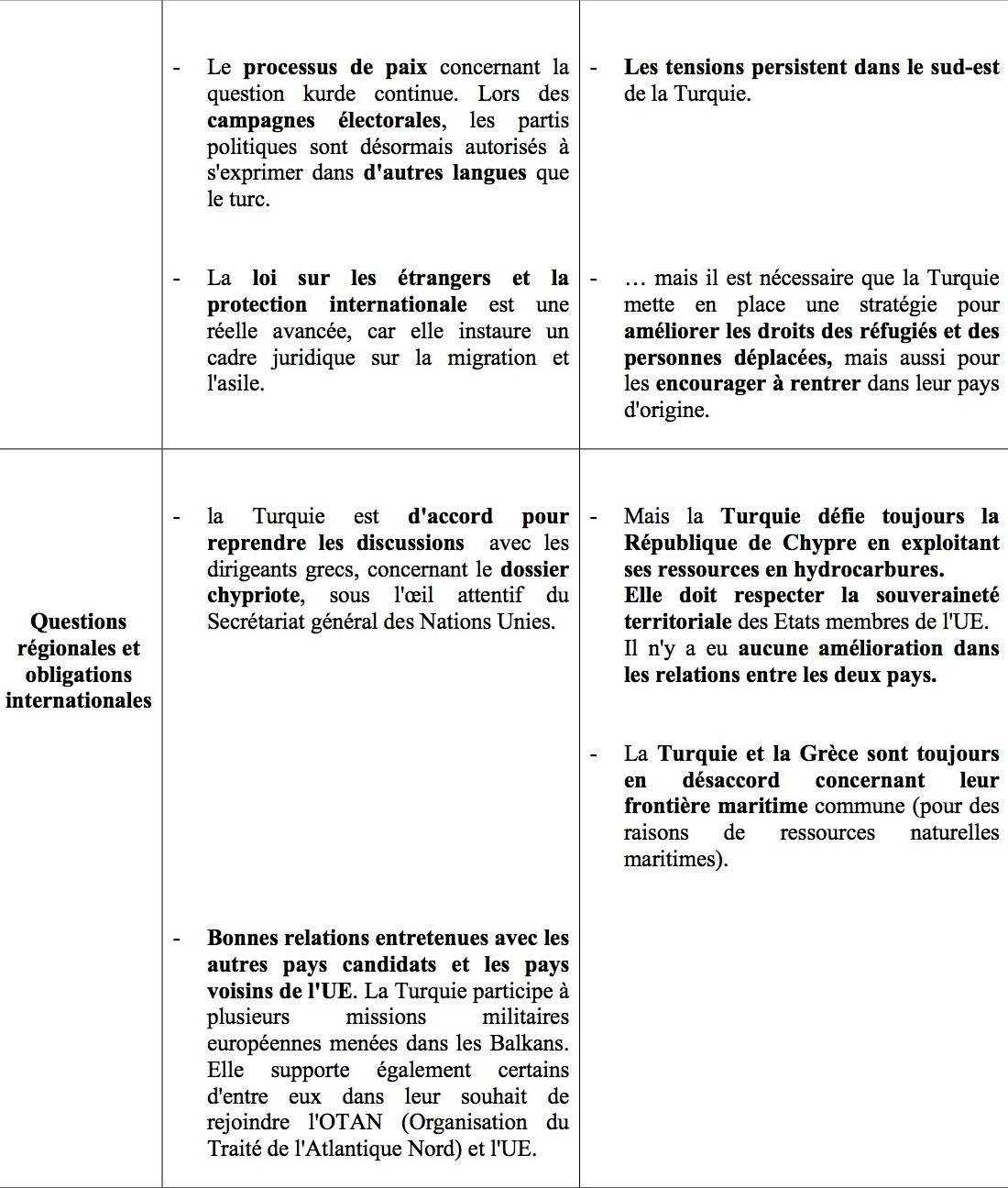 Lepetitjournal.com d’Istanbul a rassemblé les principaux extraits des conclusions sur ces sujets précis dans le tableau ci-dessous.