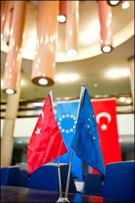 Le drapeau turc et celui de l'UE (photo European Parliament, Flickr/CC)