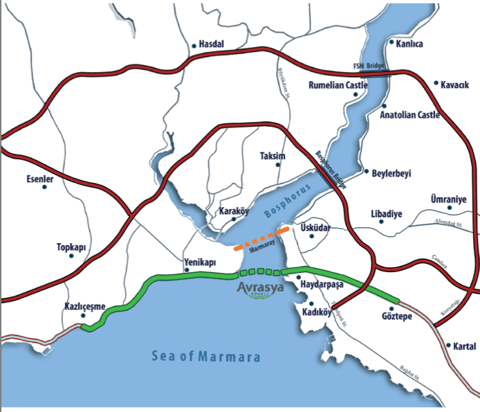 Toujours dans l'optique de faire diminuer le trafic urbain, un autre tunnel est prévu. Le projet "Avrasya Tüneli" (Tunnel Eurasie) consiste en une autoroute sous le détroit. Localisé à 1,8 km au sud de Marmaray, cet axe routier devrait relier Kazlıçesme et Göztepe. Les promoteurs du projet mettent en avant les effets du tunnel Avrasya sur la durée de ce trajet en voiture : actuellement de 100 minutes en passant par le pont du Bosphore, elle passerait à 15 minutes.