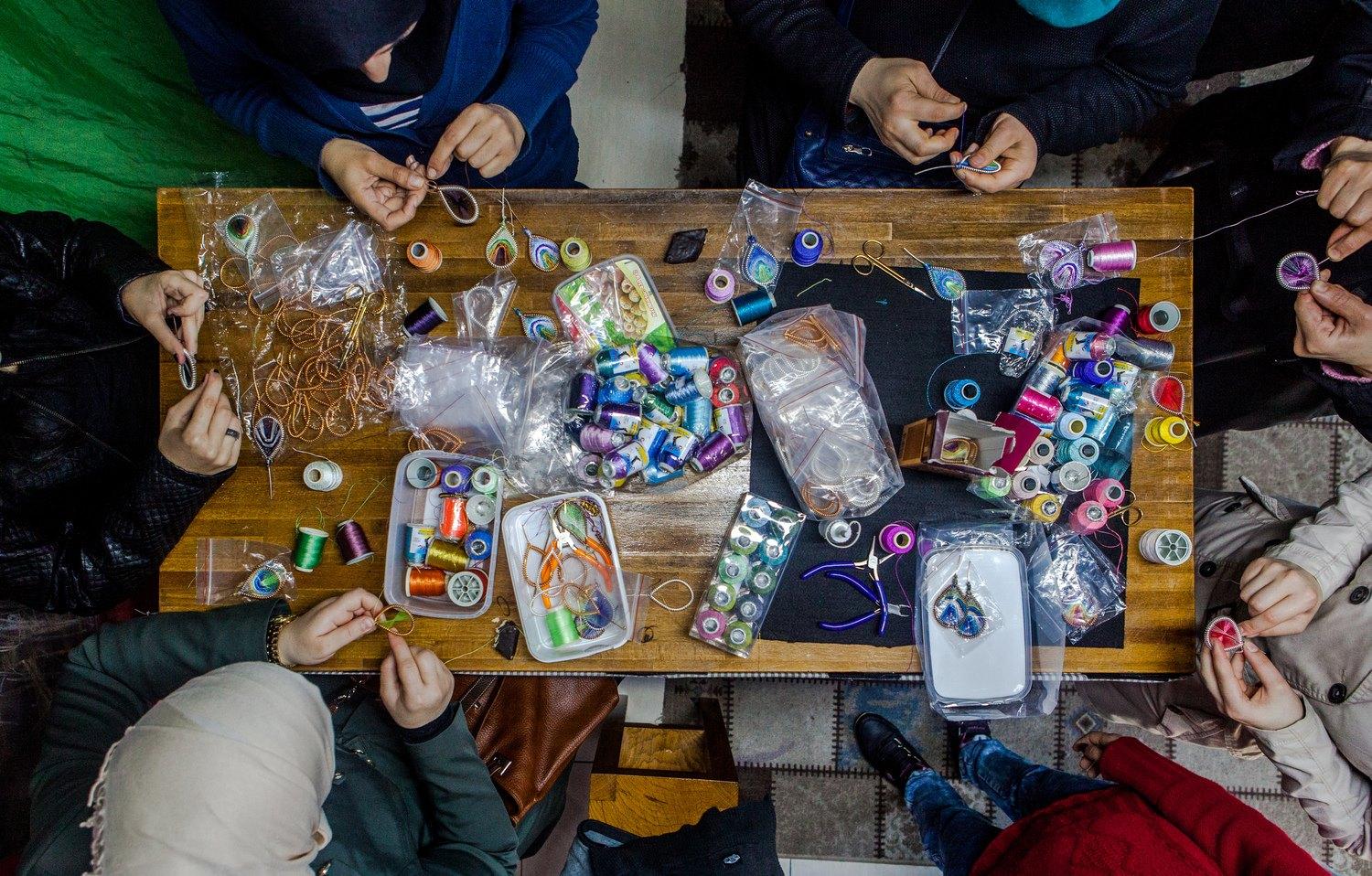 Les ateliers manuels se sont développés par la suite. "Ils permettent non seulement à ces femmes de socialiser, mais aussi d'acquérir des compétences comme la couture ou la fabrication de bijoux sophistiqués, renchérit Anna Tuson. Il est également essentiel pour elles de gagner l'argent qu'elles reçoivent chaque mois. Le travail leur redonne une valeur que l'exil leur avait dérobé. Elles contribuent ici à la vie de leur famille."