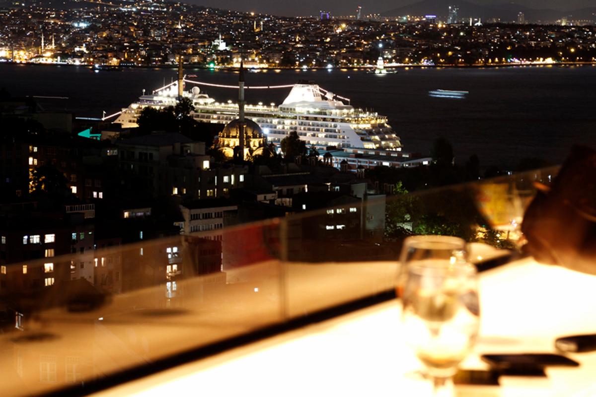Restaurant avec un bar en terrasse en plein Beyo?lu avec une vue à couper le souffle.