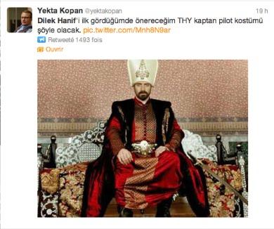 Yekta Kopan, présentateur d’un programme culturel sur la chaine NTV, suggère une tenue assortie pour les pilotes de l’appareil...
