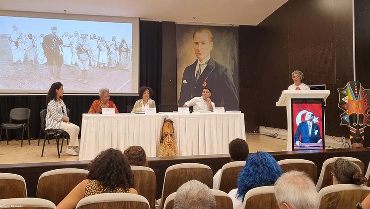 Ce fut ensuite le tour d’un panel sur la place des Afro-Turcs dans la diaspora africaine à l'occasion du 100ème anniversaire de la République de Turquie, modéré par Fatmagül Kırcı, membre du Conseil d’Administration de l’association d’Izmir. Il a vu la participation du Prof. Dr Sheila Suzanna Walker, anthropologue et écrivain venue des Etats-Unis, du Prof. Dr Yücel Yiğit qui vient de publier un livre sur les policiers afro-turcs ainsi que du Dr Fahriye Dinçer, tous deux maîtres de conférences.