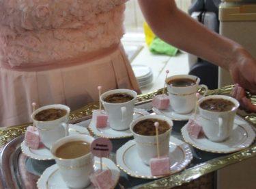 À l’issue des présentations, les deux familles s’assoient dans le salon (en cercle). La tradition veut que la gelin adayı prépare du café turc pour toute l’assemblée. Il est de coutume que le café servi au damat adayı soit salé (voire poivré, vinaigré - toutes les idées farfelues sont bienvenues) !