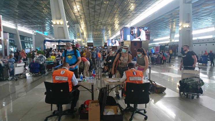 Il y a encore des vols commerciaux au départ de Jakarta, il est possible de rentrer en France et en Europe avec les compagnies Qatar Airways et Garuda .