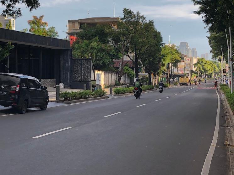 Le nombre de personnes par véhicule privé est aussi limité à 50% de sa capacité. Port du masque obligatoire. Il est possible de sortir et entrer dans Jakarta.