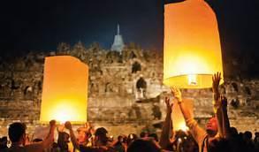 À cette occasion des cérémonies sont organisées dans les temples bouddhistes de Jakarta comme celui de Wihara Ekayana Arama sur Jalan Mangga Dua. La plus grande fête aura lieu le 14 mai au grand centre bouddhiste Tzu Chi situé au nord de Jakarta dans le quartier de Pantai Indah Kapuk. Mais c'est à Borobudur que la cérémonie revêt toute son importance. Pas moins de 10 000 moines et fidèles venant de toute l'Indonésie, de Thaïlande, du Tibet et du Myanmar sont attendus. Cette journée est marquée par un temps de prière, puis s'en suit une procession depuis le temple de Mandut pour arriver au temple de Borobudur. A la nuit tombée, des lanternes seront lâchées dans le ciel en symbole de paix. La cérémonie se terminera au petit matin et les fidèles termineront leur pèlerinage en récitant des prières tout en tournant trois fois autour de Borobudur, le plus grand temple bouddhiste du monde.