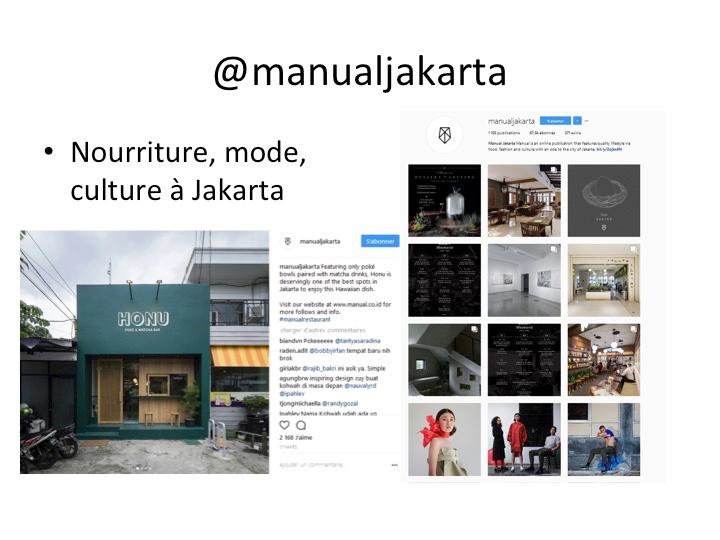 Les Indonésiens connectés passent en moyenne 3 heures et 16 minutes par jour sur les réseaux sociaux, ce qui les place à la 6e place mondiale des consommateurs de Facebook, Twitter, Snapchat et autres Instagram , les tenants du titre étant les Philippins avec quotidiennement 4 heures 17 minutes. Autant dire qu'il est important lorsqu'on vit en Indonésie de savoir surfer autre chose que des vagues pour rester à la page. Lepetitjournal.com/jakarta a sélectionné pour vous 10 comptes Instagram qui vous emmènent à la découverte de Jakarta à travers, l'art, la gastronomie, la culture, la photographie...Bon voyage !