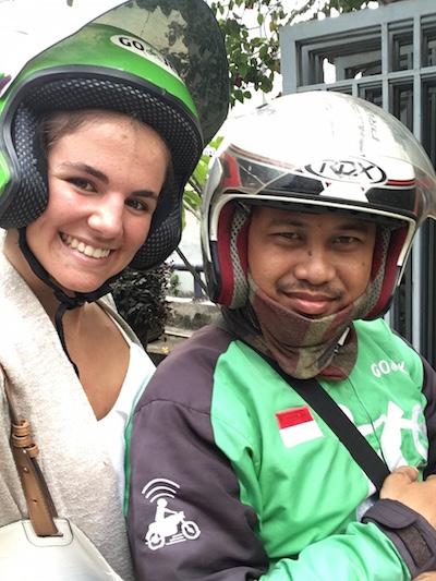 A voir la première réaction de vos camarades de promo quand vous leur expliquez que vous vous rendez en cours à pied ou avec le bus local MetroMini, vous comprenez qu'il y a un autre moyen, voire LE moyen de transport à Jakarta. Il s'agit du Ojek et sa déclinaison Gojek, un système de moto-taxi largement répandu dans les rues embouteillées de la capitale indonésienne.