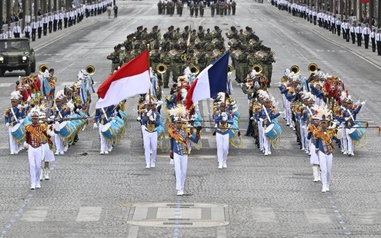 Ce fut l’une des images les plus hautes en couleurs du défilé de ce 14 juillet 2025. Il était un peu plus de 10 heures à Paris, sur les Champs-Élysées, lorsque 451 militaires indonésiens ont ouvert la parade militaire sous un ciel nuageux clairsemé de bleu après avoir réalisé un yel-yel, un chant de guerre traditionnel pour se motiver à la manière d'un Haka. Invitée d’honneur de cette édition pour célébrer les 75 ans de nos relations diplomatiques, l’Indonésie a marqué les esprits lors de cette cérémonie, notamment avec son drumband qui défilait en tête de cortège. Ce corps musical militaire très respecté, composé de 189 femmes et hommes, est connu pour sa discipline exemplaire et ses prestations spectaculaires.