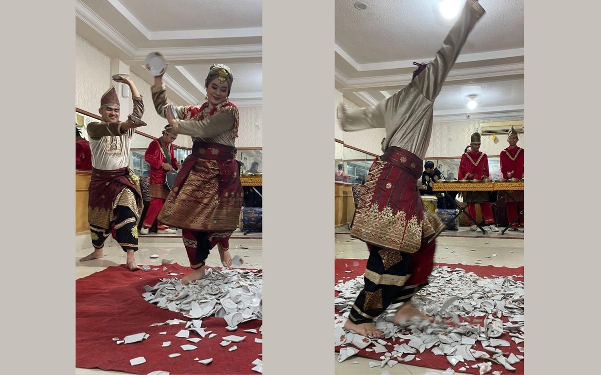 La danse menari piring est une danse traditionnelle du pays Minangkabau, région qui se situe à l’ouest de Sumatra. Les danseurs évoluent dans des mouvements gracieux et précis, tenant dans chacune de leur main, une assiette. Le nombre de danseurs est un nombre impair, généralement de trois à sept personnes.