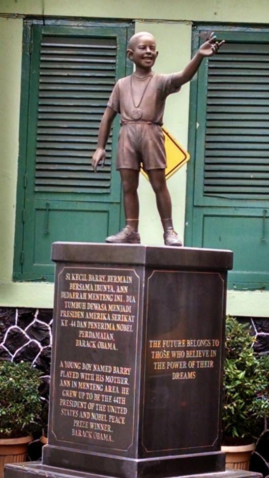 L'archipel tient une place particulière dans le c?ur de Barack Obama. Le 44ème président des États-Unis a en effet vécu à Jakarta pendant deux années de l'âge de 6 à 8 ans. Sa mère remariée à un Indonésien était alors installée dans la capitale indonésienne. Barak, appelé Barry durant son enfance, a fréquenté l'école indonésienne du quartier résidentiel de Menteng. Dans cette école, on peut voir aujourd'hui une statue en bronze représentant le jeune « Barry » en short et tee-shirt tenant un papillon à la main. Cette statue fait la fierté des habitants et des élèves qui fréquentent l'école car Barack Obama est très apprécié en Indonésie.