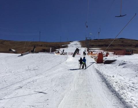 A notre arrivée, nous avons loué nos skis, il n'y a qu'une boutique. Le matériel n'est pas de grande qualité mais le service est assez pro. Pour la petite anecdote, à proximité du magasin, il y a un chemin avec le nom de chalets de l'hôtel qui portent des noms de stations de skis connus comme Meribel, St Moritz et Chamonix. C'est un peu l'hallu ! Puis il faut aller acheter son forfait. Le tout n'est pas donné pour une piste de ski ! Il y a un grand tire-fesse pour la piste principale et un plus petit pour les mini-pouces et les débutants. C'est d'ailleurs idéal pour ceux qui veulent démarrer le surf ou autre sport de glisse un peu casse-cou puisque la piste est niveau bleu. Quand nous y sommes allés, il n'y avait pas trop de queue. On peut se poser dans le restaurant d'altitude en terrasse. Il y a une vraie ambiance de station de ski mais dans un environnement africain !