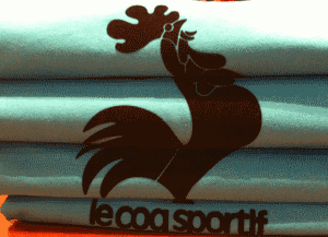1948 voit les premiers vêtements accompagnés d'étiquettes à l'image du coq gaulois. Le 26 août 1950, "le Coq Sportif, bonneterie sportive romillonne" devient une marque déposée.
