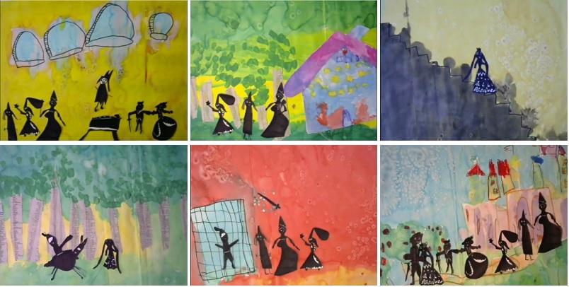 « Nous nous sommes inspirés du travail de Michel Ocelot, créateur de Kirikou, entre autres. Nous étudions avec nos élèves deux de ses films l'un Princes et princesses et l'autre Les contes de la nuit où on voit les petites silhouettes en noir et blanc sur des décors super colorés. Je me suis dit au départ que ce serait impeccable avec mon projet sur les ombres et que nous allions créer des décors en couleurs et faire bouger des marottes devant. La première fois qu'on a créé un film comme ça avec Evelyn c'était Boucles d'or et les trois ours (c'est la troisième année que je fais ces dessins animés). J'ai ensuite découvert le travail d'Emmanuel Selles, maître de CM2, qui lui faisait des films d'animation avec des Playmobil. Il m'a présenté l'outil avec lequel il travaillait qui est extrêmement simple à utiliser, même par des enfants. L'idée est venue de là, et je me suis dit qu'on allait faire quelque chose de très beau.