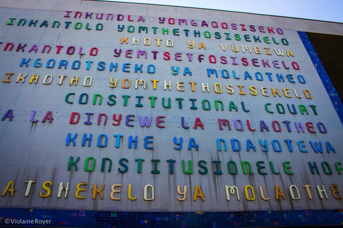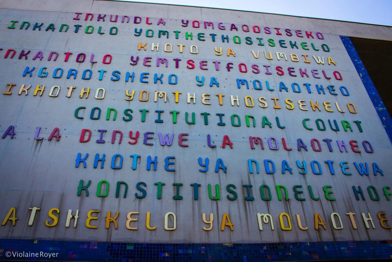 Crédit photo : Entrée de la Cour Constitutionnelle à Johannesburg, déclinées en 11 langues, Violaine Royer.