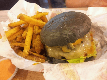 Concernant les burgers, plusieurs choix sont offerts : b?uf, poulet, végétarien. Il y en a pour tous les goûts ! Quelques petits plus font de cet endroit un lieu d'exception. Tout d'abord le pain. Il est noir car c'est du pain de charbon de bambou. Ensuite les ingrédients sont frais et recherchés à l'image de champignons portobello ou de ces petites tomates séchées. Pour accompagner le burger, les frites sont larges et grosses et sont assaisonnées d'herbes de provence. Le tout vient dans un petit panier qu'il faut venir chercher au bar avant d'aller rejoindre ses amis à table.