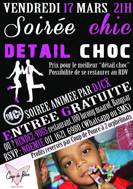 Parmi leurs nouvelles actions, le groupe s'essaye pour la toute première fois le 17 mars, à la création d'un évènement au restaurant français Rendez-vous situé à Bangsar, avec pour thème ?Soirée chic, détail choc?, tout le monde est bienvenu et les bénéfices engendrés seront reversés aux deux orphelinats qu'aide l'association. Des produits (vins, alcools...) ainsi que des services (massages, coiffeurs...), seront en vente des tarifs réduits. ?Si c'est un succès, pourquoi ne pas continuer avec d'autres évènements? confient-elles souriantes.