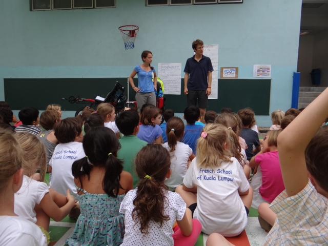 Les trois classes de CE1 du LFKL ont accueilli récemment un couple de Français parti en tandem sur les routes de l'Asie du Sud-Est. Leur but? Récolter, en partenariat avec des écoles françaises des fonds pour les enfants de ces pays qui n'ont pas accès à l'école. Leur projet, intitulé Ecoliers Solidaires est mené sous l'égide de l'association Enfants du Mékong.