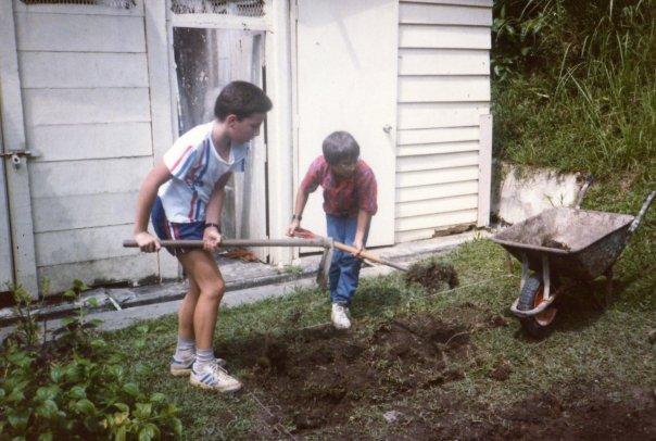 (Photo Christophe Cogez : entrain de creuser le futur potager / jardin botanique de l'école)