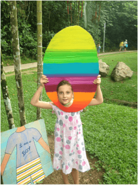 Tout le monde s'est élancé avec plaisir et impatience, et sans un soupçon de déception lorsque les enfants se sont aperçus que les ?ufs déposés ne pourraient être mangés! Ces petits malins avaient bien compris que des ?ufs en chocolat n'auraient pas résisté à la chaleur, et se seraient certainement fait croquer par d'autres petites bouches voraces faisant partie de la faune locale du parc. Mais pour ne pas tout perdre au change, chaque panier a pu être troqué contre un joli sachet rempli de sucreries! Plus d'une vingtaine d'?ufs par enfant, tous fabriqués par les doigts agiles de l'équipe de Coup de Pouce, en carton, en bois ou en perles, tous peints, dessinés, décorés, voilà des oeufs qui ne manquaient pas d'originalité.