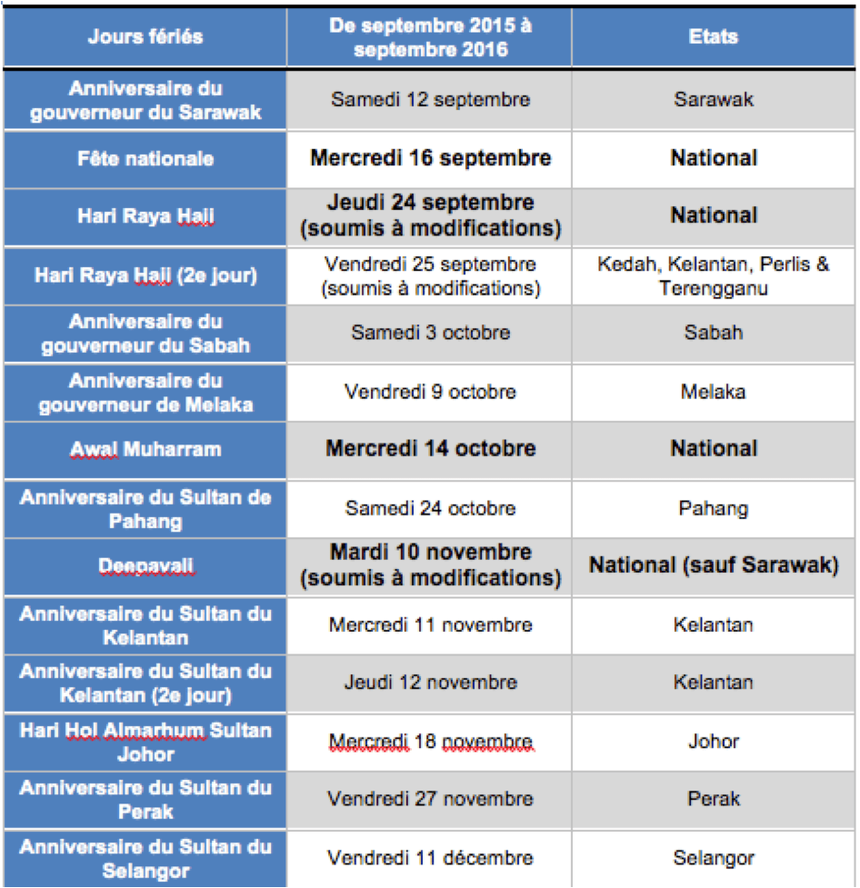 Si vous ne l'avez pas encore consulté, voici un récapitulatif des jours fériés entre septembre 2015 et fin août 2016. En perspective, 15 jours fériés à l'échelle nationale cette année.
