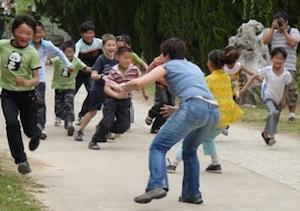 C'est au moment de se dire au revoir que l'émotion est la plus forte. Les enfants sont devenus inséparables, et les adultes un peu redevenus enfants... Un weekend n'a pas permis d'abolir les différences, mais on en a pris la mesure avec beaucoup de respect et d'attention. La relation, d'abord hésitante, s'est tissée naturellement au fil du weekend. Si on parle mal le mandarin, pas de problème, les sourires font le reste et il y a toujours une bonne volonté pour traduire, parfois même entre mandarin et dialecte. "Dis, on y retournera?" Telle fut la question des enfants à peine partis.