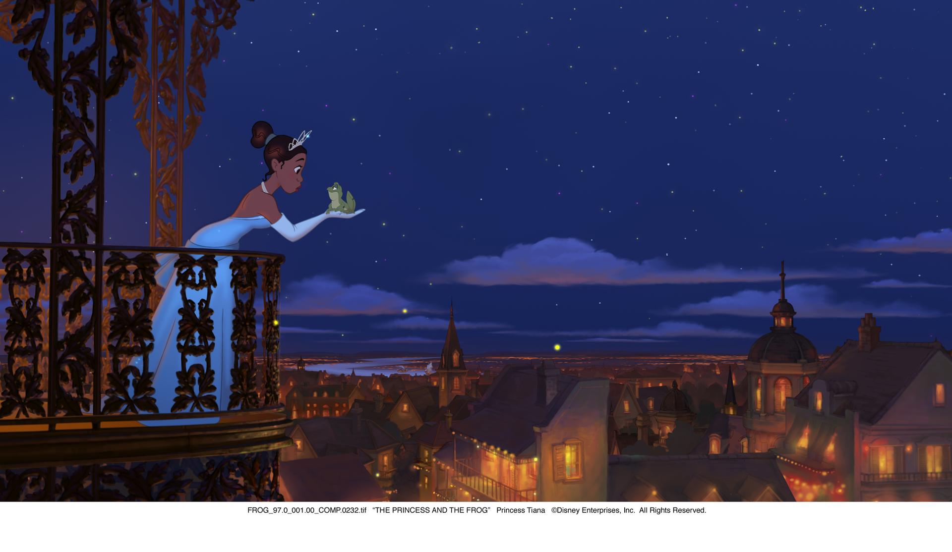 On embarque donc pour la Nouvelle-Orléans à la rencontre de Tiana, une petite fille noire des quartiers pauvres, qui rêve, comme son père d'ouvrir son restaurant. Elle est amie avec Charlotte, une jeune fille blanche pourrie-gâtée vivant dans les beaux-quartiers, et ne rêvant que de trouver son prince charmant façon conte de fée. Quelques années plus tard, les filles ont grandi, mais leurs rêves et leurs situations n'ont pas changé. Jusqu'au jour où le prince Narveen, débarque en ville. Ce prince fou de jazz et de fêtes, fait des émules auprès des femmes, mais attire la jalousie, notamment du sorcier vaudou, le Dr Facilier, qui va lui jeter un sort et le transformer en grenouille. Comme dans les contes de fée, le prince demande à une belle jeune fille de lui donner un baiser pour qu'il retrouve sa forme humaine. Mais, lorsque Tiana l'embrasse, rien ne se passe... enfin presque. Puisque elle aussi se retrouve transformée en grenouille. Tous deux partent dans le bayou, sur le Mississipi, à la recherche de Mama Odie, seule sorcière à pouvoir inverser le sort. Une aventure qui va vite se transformer en un parcours épique accompagné de personnages aussi drôles que farfelus, tels que Ray, la luciole, ou Louis le crocodile trompettiste, le tout au son du jazz façon Nouvelle-Orléans, et relevé par la cuisine épicée et haute en couleur de Tiana.