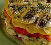 - Prenez soin de terminer votre construction par le toit coloré de tomates et de chapelure, qui justifie son nom de gratiné, avant d'y déposer les pignons restants. Les plus gourmands se permettront de rajouter un léger filet d'huile d'olive ainsi qu'un manteau de parmesan râpé.