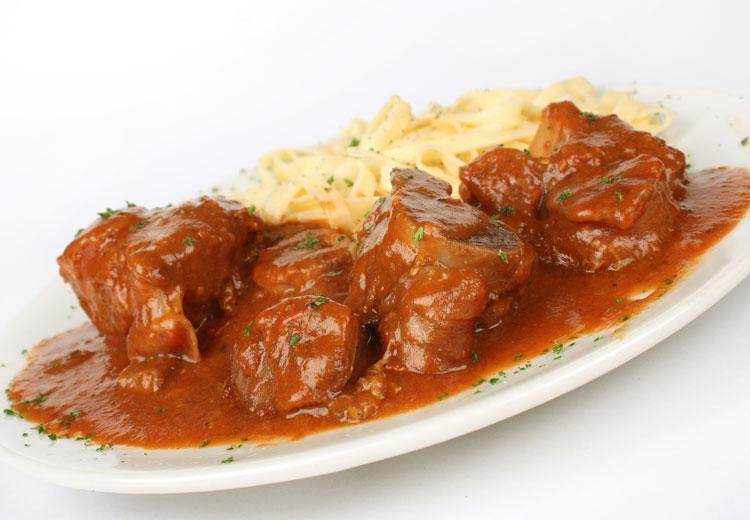 - Couvrez votre faitout et laisser revenir doucement jusqu'à ce que la viande soit bien tendre. Attention toutefois à ne pas l'oublier sur le feu car, si elle cuit trop, la viande risque de se défaire. Surveillez l'avancement du processus avec la pointe d'un couteau. Dès que la cuisson est bonne, enlevez délicatement la viande, réservez-la et laisser la sauce épaissir à feu doux.
