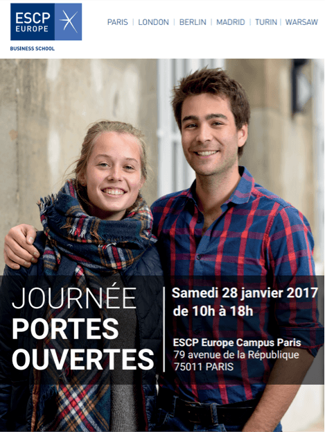 Pour plus d’informations sur le Bachelor in Management (BSc) de ESCP Europe cliquez ici ou venez rencontrer nos étudiants et nos équipes lors de la journée portes ouvertes du campus Paris, le samedi 28 janvier 2017.