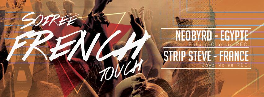 Ce jeudi à l'Institut Français d'Egypte de Mounira, rendez-vous avec une nouvelle édition de la Nuit French Touch, où vos oreilles et votre corps voyageront au son des platines, accompagnés par des guides d'exception en la personne de NEOBYRD, un des DJ les plus tendance d'Egypte, et DJ Strip Steve, DJ français, qui déshabillera vos tympans en plus de faire voler les cravates.