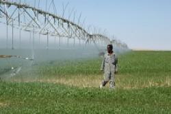 En plein désert, des champs de luzerne de 50 hectares irrigués par de gigantesques pivots (photo LPJ).