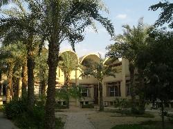Derrière la palmeraie, la bibliothèque ultra moderne des Dominicains