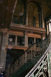 Le Palais Said Halim Pacha s'étend sur 3.600m2 répartis en 2 étages couverts de colonnes en marbre, plafonds à caissons en bois un peu kitch mais surtout séparés par un très bel escalier en bois, abîmé, mais avec deux balustrades en fer forgé d'époque, aux motifs amusants dont un malicieux visage de profil tirant la langue...