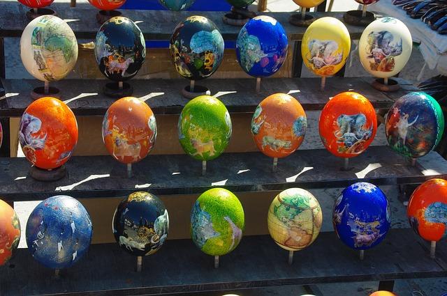 L'oeuf d'autruche, un cadeau plutôt original. Les oeufs d'autruches sont peints et décorés de nombreux motifs comme par exemple la carte du monde, des éléphants etc..