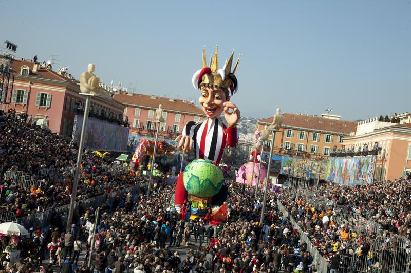 Les historiens n'ont pas connaissance de la date de la première édition du carnaval mais savent qu'il se tenait déjà en 1294. Le carnaval de Nice est l'un des plus grands carnavals du monde et reçoit chaque année une audience de plusieurs centaines de milliers de spectateurs. 16 chars de 8 à 16 mètres de hauteurs sont construits suivant un thème précis selon les années. Le thème du carnaval est «Le Roi des médias». Il s'agit de montrer qu'en France, malgré les attentats, la liberté d'expression réside toujours dans le pays. A Nice, les chars défilent sur la place Masséna, puis se déplacent sur la célèbre promenade des Anglais. La parade se déroule le jour et la nuit et est animée par des milliers de musiciens et de danseurs venus de part et d'autre de la planète, qui offrent un spectacle exotique.