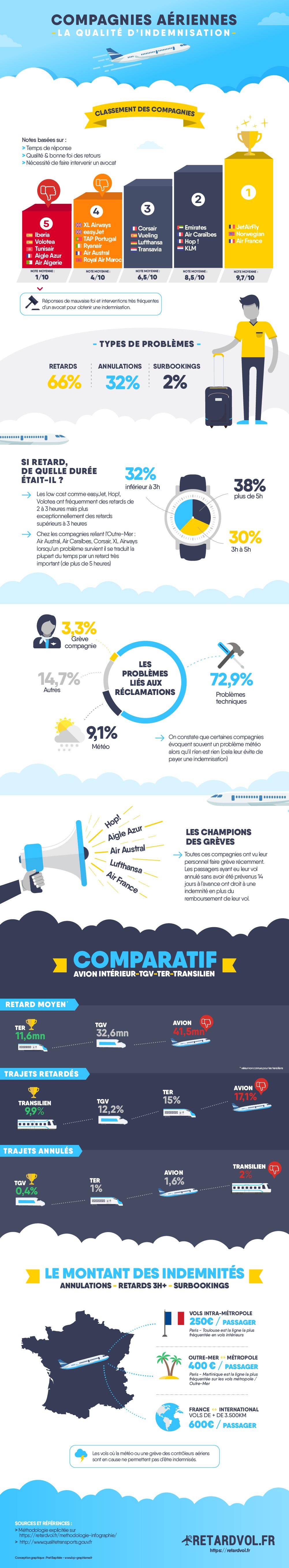 Ce classement se concentre sur les demandes de passagers Français entre avril 2016 et avril 2017. Certaines compagnies importantes comme Qatar Airways par exemple ne figurent pas dans le classement, car les compagnies avec moins d'une centaine de dossiers traités dans l'année par RetardVol.fr ne figurent pas dans le classement (la société ayant jugé insuffisant l'échantillon pour en tirer une conclusion pertinente).
