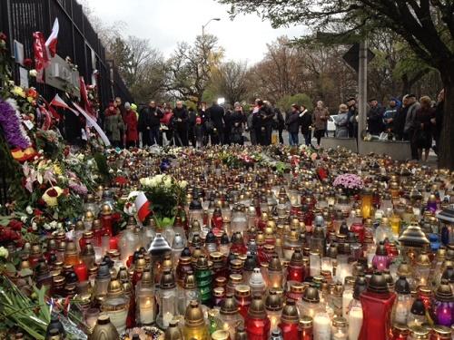 Comme tous les principaux monuments du monde entier, le Palais de la culture, symbole de Varsovie, s'est paré des couleurs de la France. Dès samedi matin à l'ambassade de France en Pologne, anonymes ou officiels, on ne comptait plus les émouvants témoignages de solidarité aux victimes et aux familles de victimes des attentats terroristes de la nuit du 13 novembre, à Paris.
