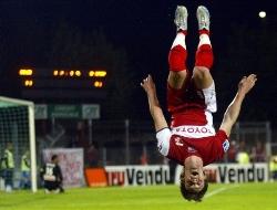 Steve Savidan a déjà fait 13 pirouettes comme celle-ci cette saison. Une pour chaque but (photo AFP)