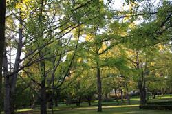 Cet arbre a d'ailleurs plus d'intérêt s'il se retrouve en compagnie de plusieurs congénères pour y distinguer à loisir toutes les nuances de couleur qui s'expriment d'un exemplaire à l'autre. C'est, par exemple, le cas le long de l'avenue João XXI, entre la place de Areeiro et l'avenue de Roma. Autre lieu de la capitale où plusieurs ginkgos se font compagnie : dans le jardin des Amoreiras, entre l'Aqueduc des Aguas Livres et le musée Vieira da Silva. Ils sont plantés au milieu du jardin autour d'un petit bassin.