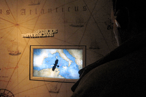 Au premier étage, la visite se poursuit avec l'exposition Lisboa virtual. Des écrans tactiles, des photographies et des cartes de la ville présentent d'autres grands événements qui ont marqué la mémoire des Portugais comme la révolution du 25 avril 1974 ou encore l'implantation de la République en 1910. (photo : M.J.Sobral)