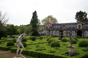 Les jardins sont la partie la plus populaire de la propriété, comprenant plusieurs scénarios sur une surface de plus de 5 hectares. Ils constituent le plus important ensemble artistique et paysagiste portugais du XVIIIe siècle. Dans leur conception originelle, on a recherché à s'approcher du style de la Renaissance italienne adapté aux caractéristiques du paysage méditerranéen. Mais la touche portugaise est bien marquée par les azulejos qui représentent, par exemple, des coutumes rurales pour chaque saison de l'année ou qui racontent les faits héroïques des chevaliers de la famille Mascarenhas et ces images se retrouvent renversées dans l'eau du grand bassin.