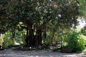 Avec plus de 150 ans d'âge, pour la plupart, les arbres qui composent ce jardin se sont bien développés, tels les figuiers d'Australie (Ficus macrophylla), dont l'exemplaire en face du kiosque est un véritable monument végétal. Comme autres arbres emblématiques de cet espace vert, on peut signaler un ginkgo (G.biloba), arbre aux cent écus, très ornemental, surtout à l'automne grâce à la coloration multiple de ses feuilles de différents tons de jaune et une bonne représentation de conifères en tout genre; araucaria de Nouvelle Calédonie (A. columnaris), séquoias (S.sempervirens), cèdres (Cedrus atlantica ou du Liban), pins (parassol et sylvestre), ainsi que des cyprès Cupressus sempervirens) et des ifs (Taxus baccata).
