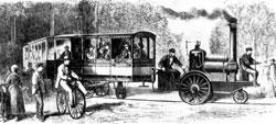 Au même moment, un inventeur français du nom de J. Larmanjat, né en 1826, imagina une traction à vapeur, le monorail Larmanjat. En 1867, il présenta à l'Exposition Universelle de Paris son invention la plus récente : une machine à vapeur qui pouvait circuler sur les routes. La locomotive avançait sur une petite roue centrale guidée par un rail et deux roues latérales plus grandes, ce qui permettait d'équilibrer et de supporter le poids du convoi et des passagers.