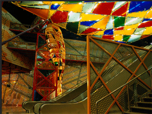 Olaias, station qui se démarque par sa multitude de couleurs, possède l'oeuvre de Graça Pereira Coutinho qui élabora quatre murs en relief pour l'accès aux quais, ainsi que celle de Pedro Calapez qui conçu un panneau pour le hall. (Photo @Metropolitano de Lisboa - Olaias)