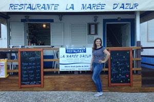 C´est ainsi qu´en juin dernier elle ouvre un restaurant au c?ur de la vieille ville d´Albufeira où ils ont décidé de s´installer. Le nom du restaurant n´aurait pu être mieux choisi "La Marée d'azur " : "La Marée pour les crustacés et poissons et Azur comme la couleur bleu de l'océan et du restaurant qui reste dans le ton bleu aussi...", comme l´explique Anne-Christine.