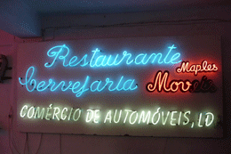 Ici, un néon ayant appartenu à la fabrique de laine Raposo, là, une enseigne lumineuse de "antiga casa mendes", et un peu plus loin, dans un recoin l'ancien panneau de l'opticien Pereira. Chacune d'entre elles possèdent son histoire et Rita se fait un plaisir de la raconter aux visiteurs.